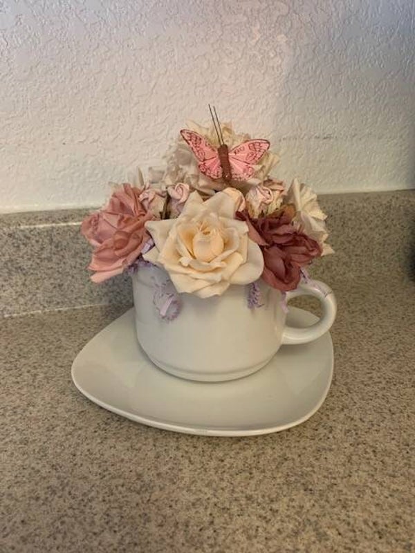 Thank you mug or any occasion mug with artifical flowers. Colors and types of flowerswill vary depending on avaliability. If you would like specific color or flower please email me with specifics.